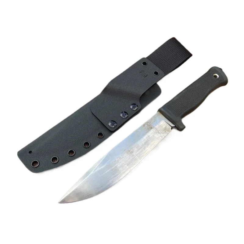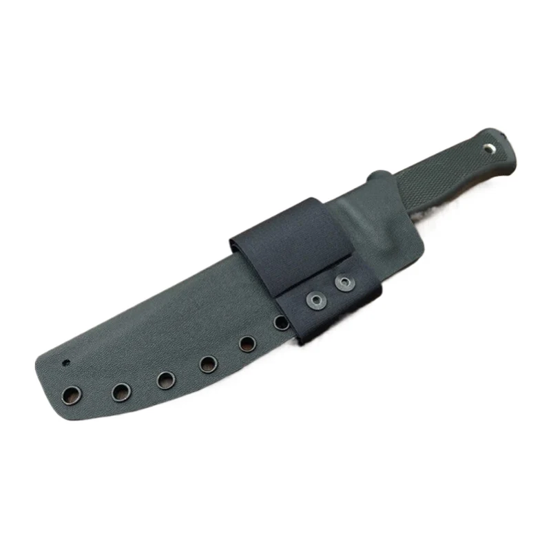 Profesjonell Kydex knivslire med hardt skall for campingkniven - den høyeste kvaliteten på det amerikanske og europeiske markedet. Jeg lager Kydex-sliren for at kniven skal passe perfekt, med tanke på det myke håndtaket. Til tross for sin høye vekt sitter kniven sikkert i sliren, slik at den også kan bæres opp ned (tip-up).